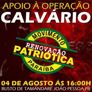 Segundo os organizadores o evento tem caráter popular, onde trabalhadores, servidores públicos, e cidadãos que pagam seus impostos vão denunciar a corrupção na Paraíba e prestar todo o apoio ao Gaeco do Ministério Público que comanda a Operação Calvário.