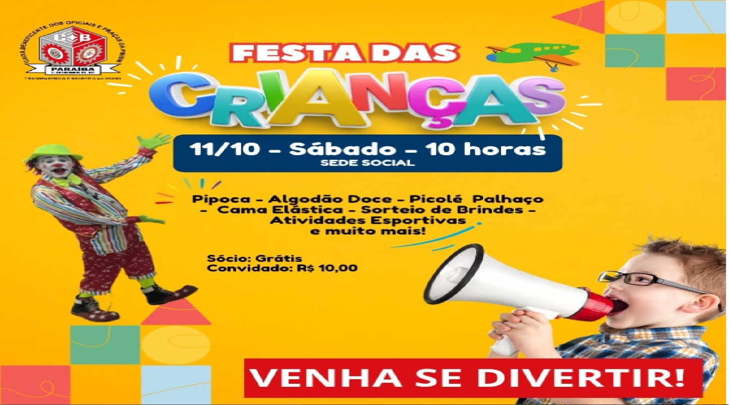 A Caixa Beneficente de Oficiais e Praças da Polícia e Bombeiros Militares da Paraíba preparou uma programação especial para comemorar junto com sócios e convidados o Dia das Crianças, neste sábado, dia 11, a partir das 10h, na sede social, no Aeroclube, em João Pessoa.
