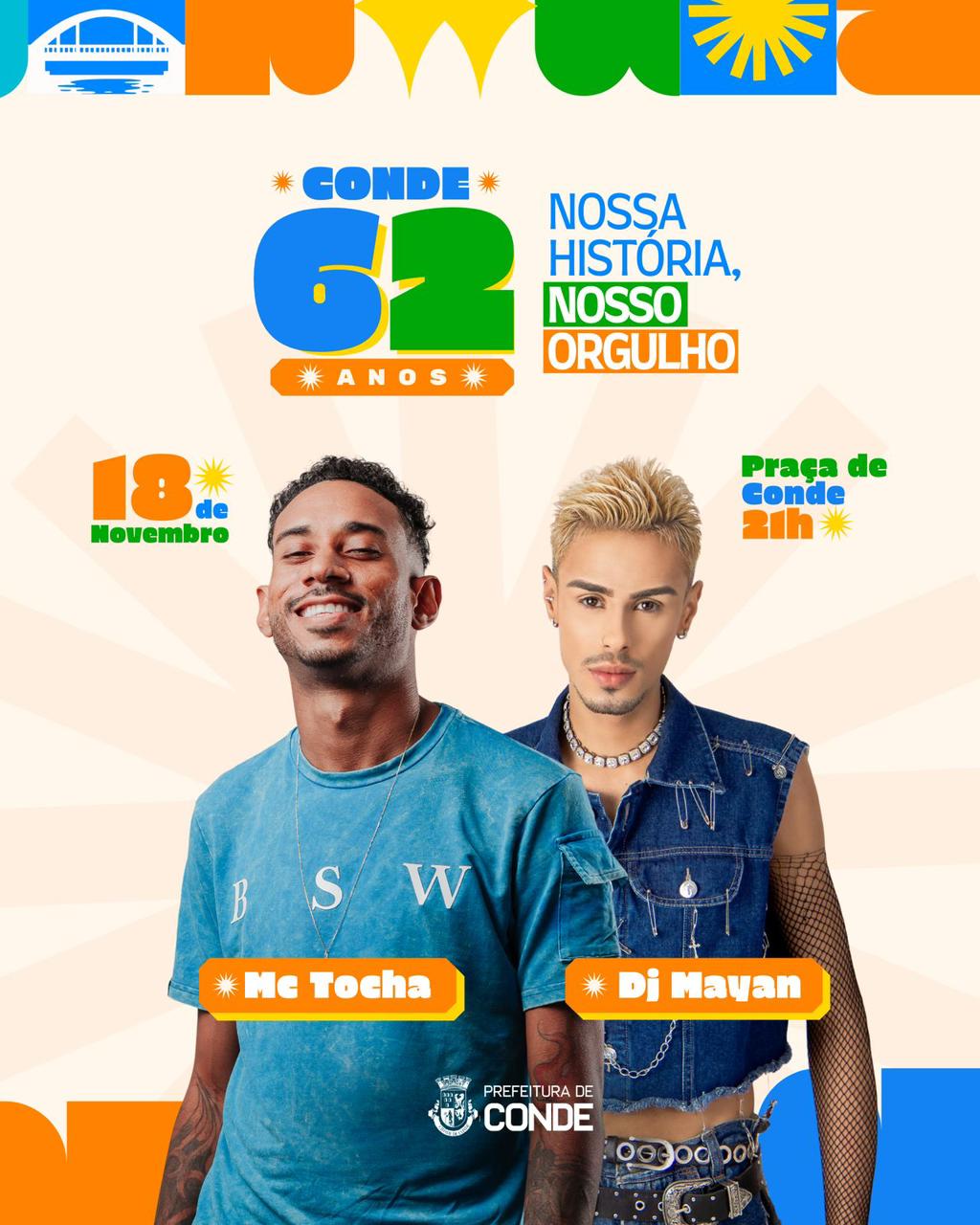 A programação completa do aniversário de Conde está disponível nos canais oficiais da Prefeitura.