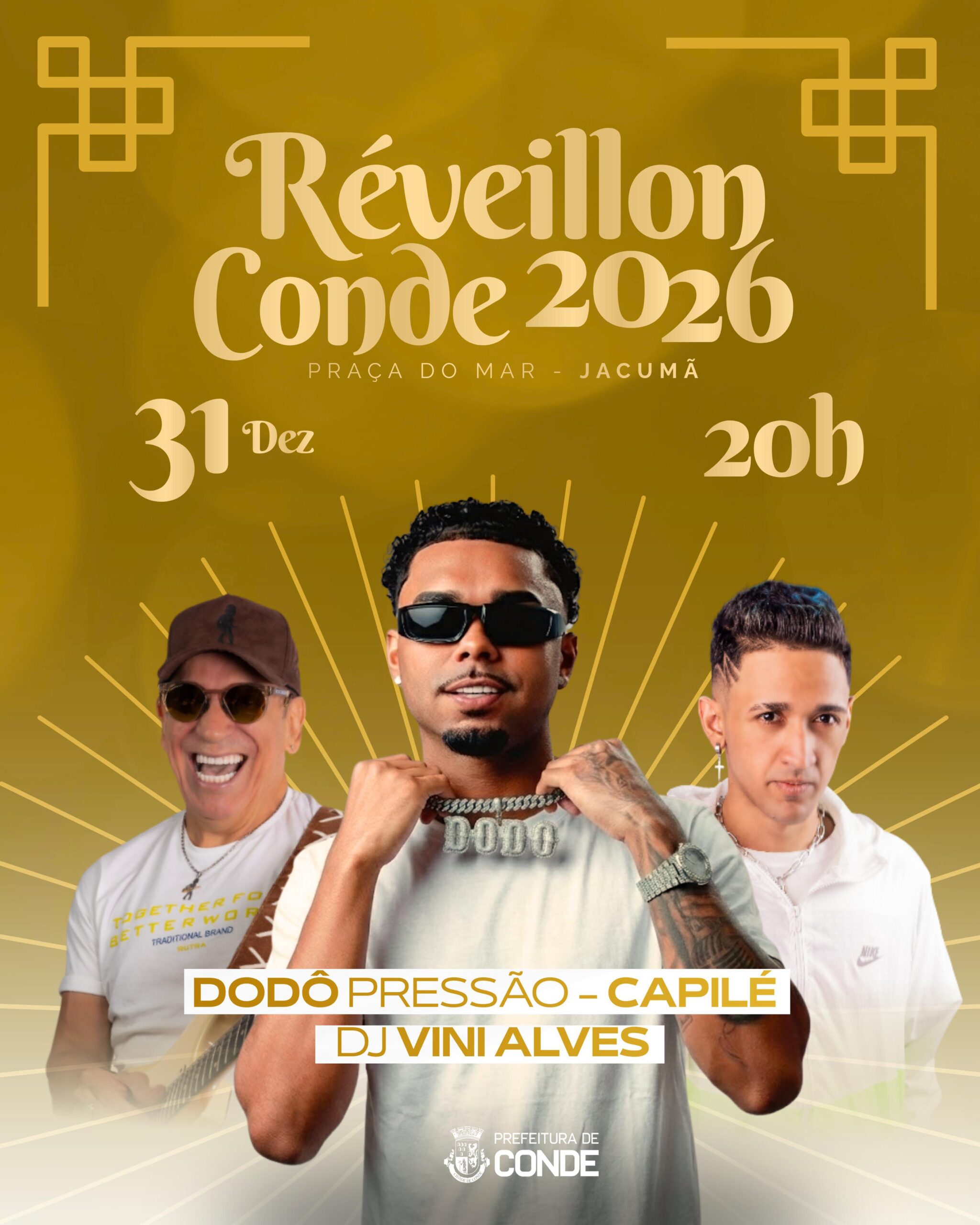 A Prefeitura de Conde anunciou nesta segunda-feira (15) a programação oficial do Réveillon Conde 2026, que será realizado no dia 31 de dezembro, a partir das 20h, na Praça do Mar, em Jacumã.