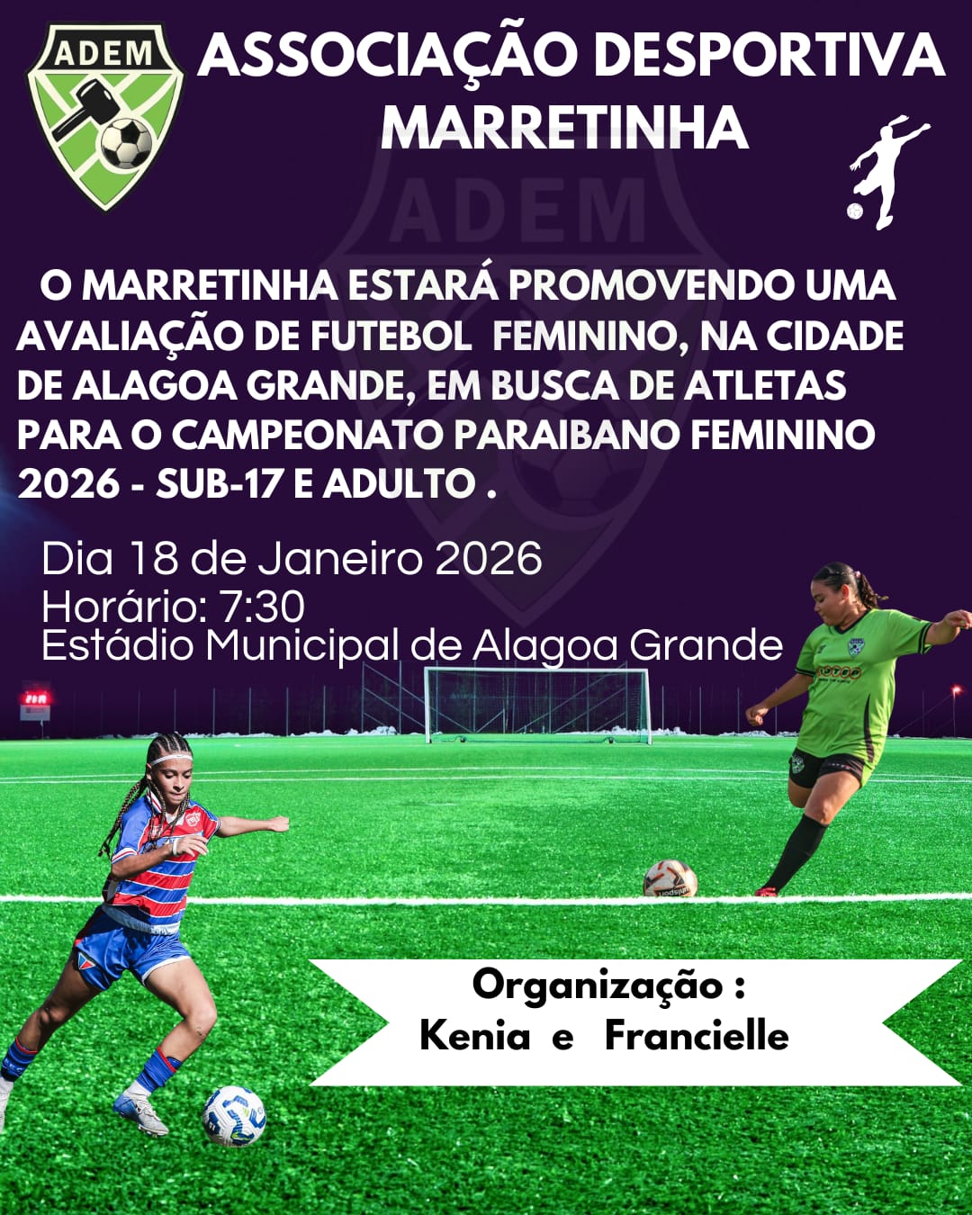 SELEÇÃO DE ATLETAS – No próximo dia 18 Marretinha estará realizando uma seleção de atletas para o time feminino que disputa o Campeonato Paraibano.