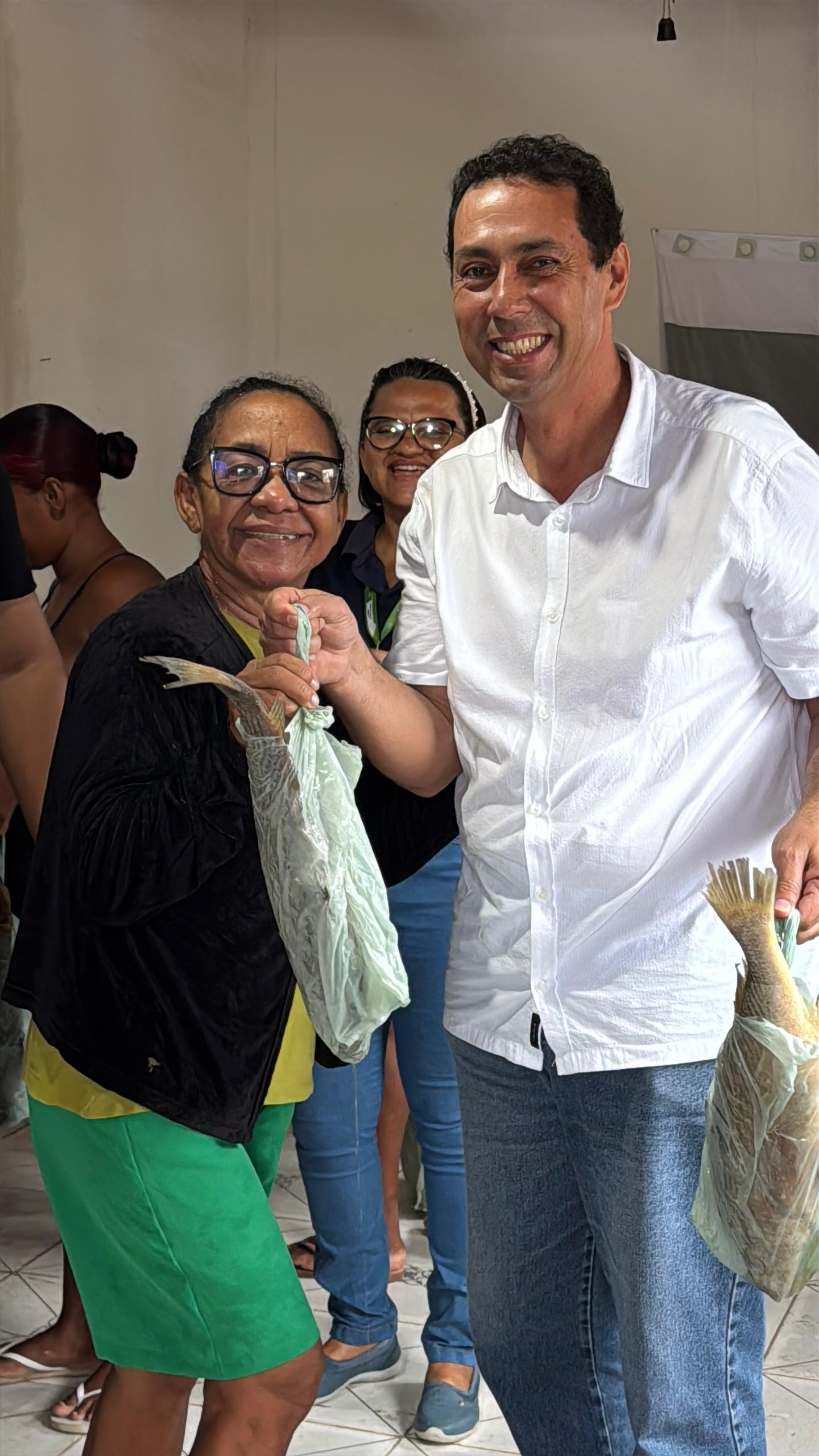 O prefeito Leo Bandeira acompanhou todo o processo, ao lado da secretária Andreia Karla, desde a preparação até a entrega dos peixes às famílias cadastradas no município.